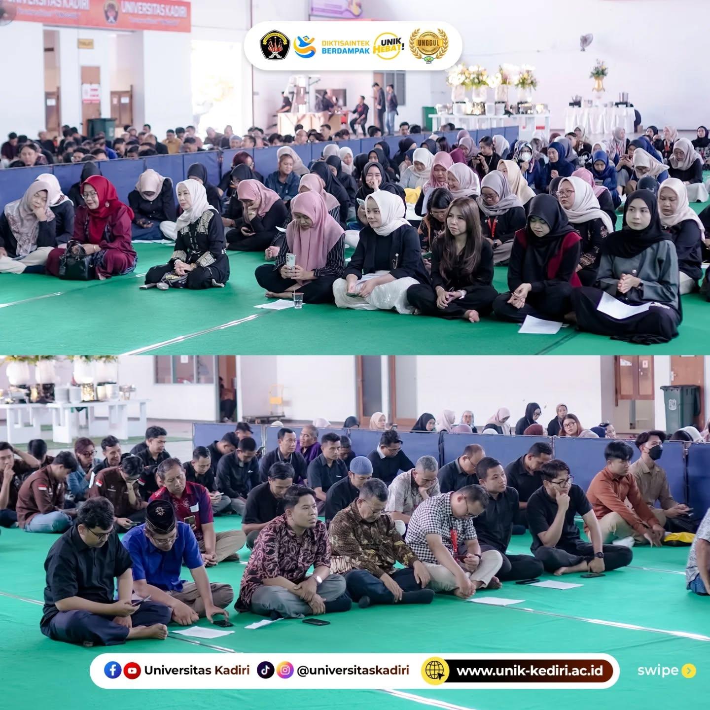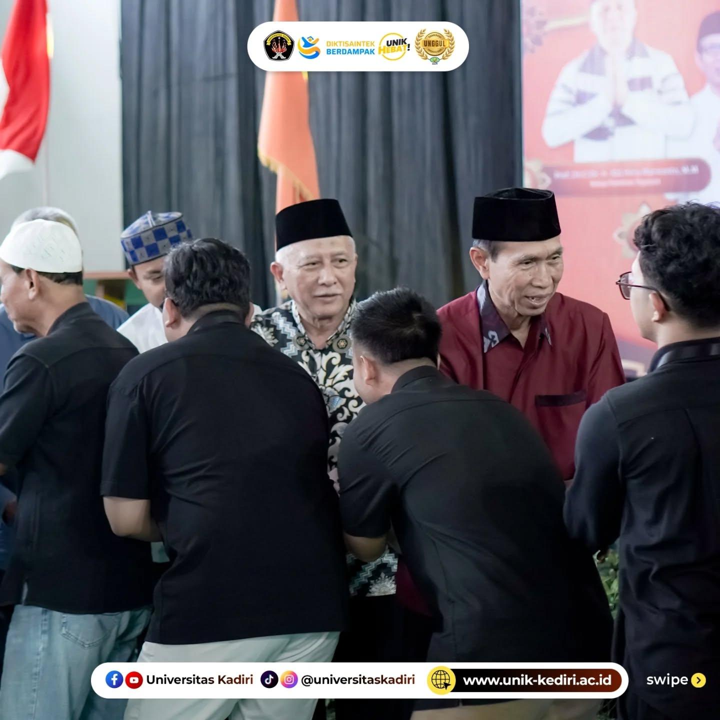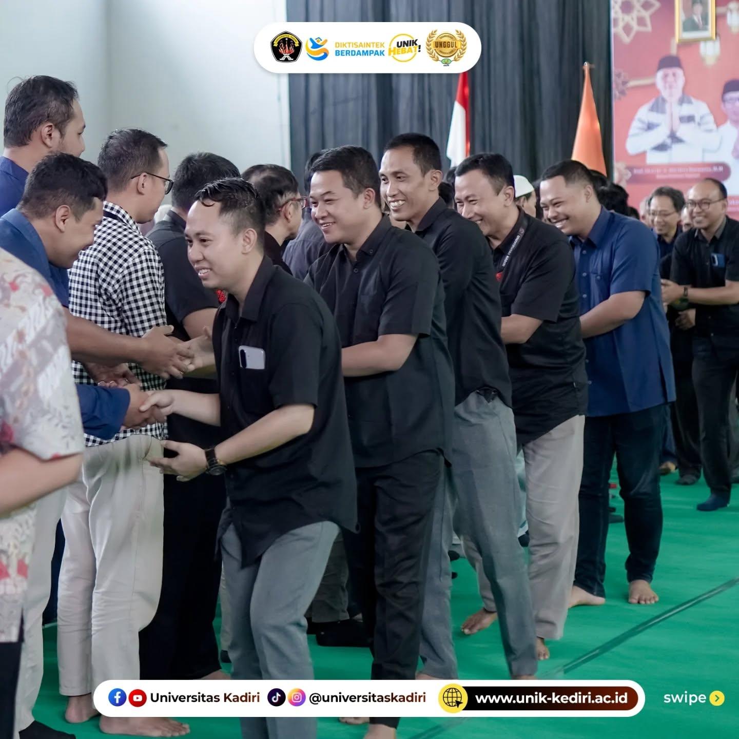 Acara dihadiri oleh civitas akademika Universitas Kadiri, dan dirangkaikan dengan tausiyah oleh Ust. Surahmat, M.Hum. Suasana hangat terlihat dari interaksi antarpeserta yang saling menyapa, berjabat tangan, dan bertegur sapa sebagai wujud membangun harmoni setelah Ramadhan.