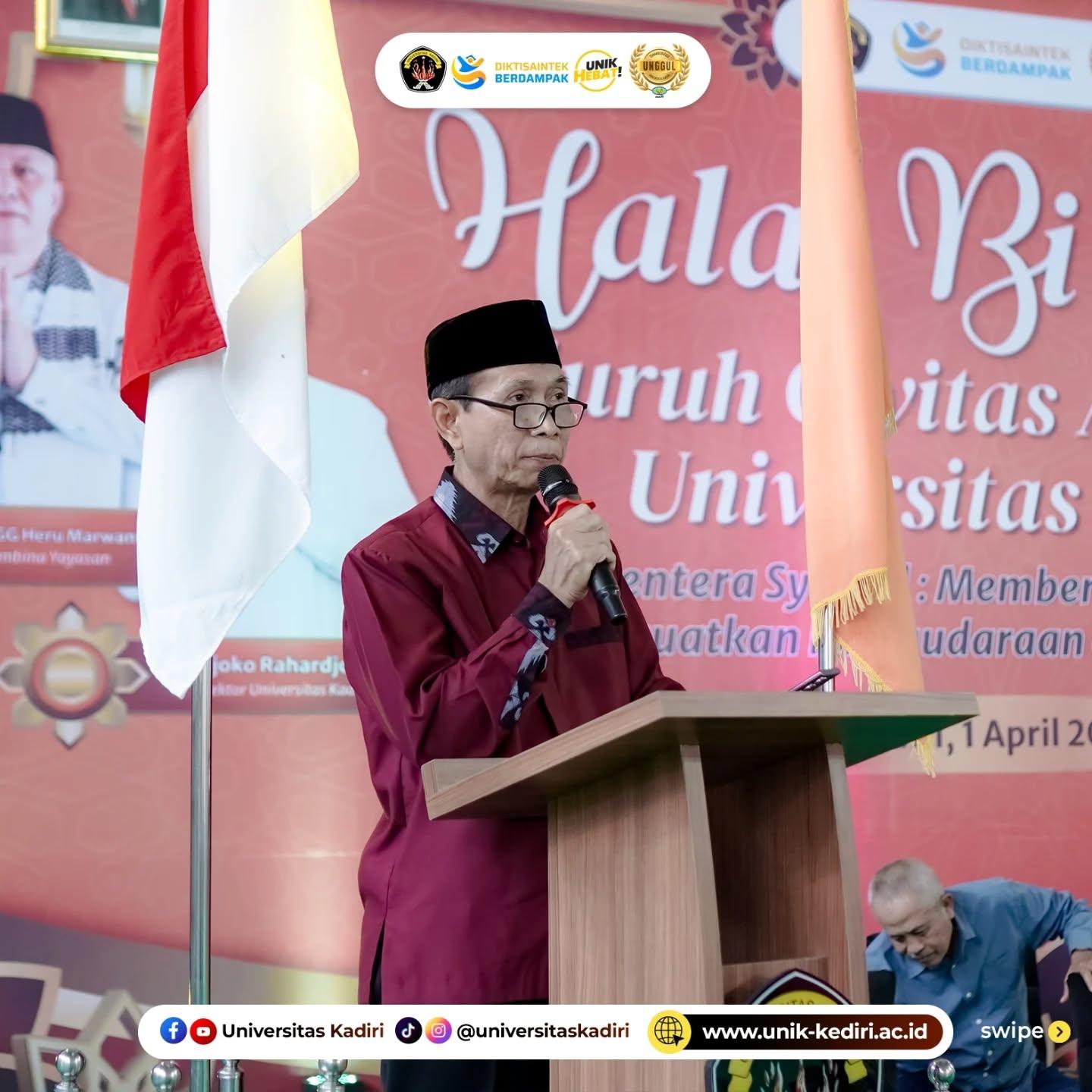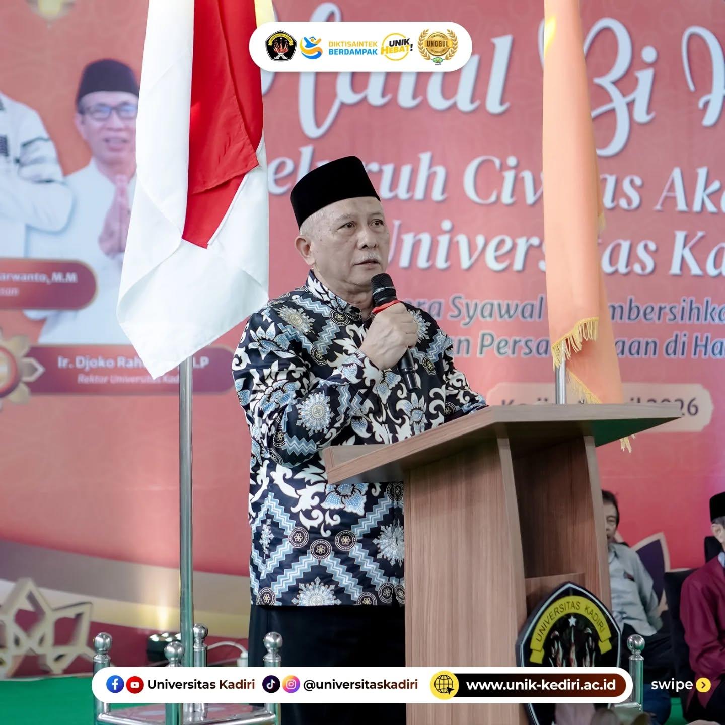 Pada sesi sambutan, Rektor Universitas Kadiri Ir. Djoko Rahardjo, MP. menegaskan bahwa halal bihalal merupakan momentum untuk saling memohon maaf dan memberi maaf, sekaligus menjadi sarana memperkuat energi kebersamaan dalam menjalankan tugas-tugas akademik. Rektor juga menyampaikan harapan agar kegiatan ini berlangsung baik, membawa manfaat bagi semua pihak, dan menjadi dorongan untuk semakin semangat bekerja serta mengabdi kepada Universitas Kadiri.