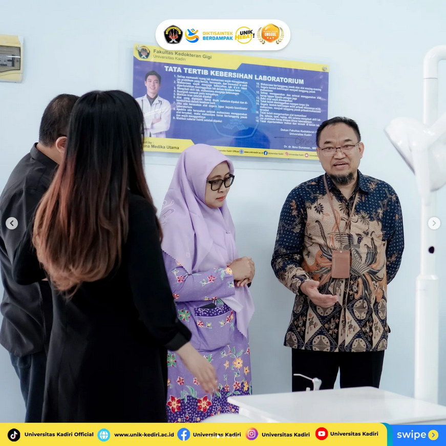 Sebagai bagian dari agenda benchmarking, rombongan diajak untuk melakukan tinjauan fasilitas akademik di lingkungan FKG Universitas Kadiri, antara lain laboratorium, klinik pendidikan dokter gigi, ruang kuliah, serta sarana penunjang pembelajaran lainnya. Kunjungan lapangan ini memberikan gambaran komprehensif mengenai implementasi standar pelayanan pendidikan, tata kelola laboratorium, serta pemanfaatan peralatan pembelajaran modern yang digunakan dalam menunjang kompetensi mahasiswa.