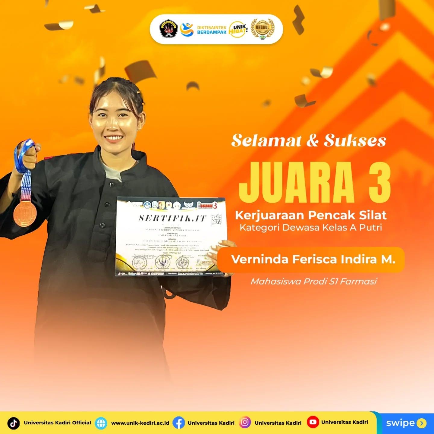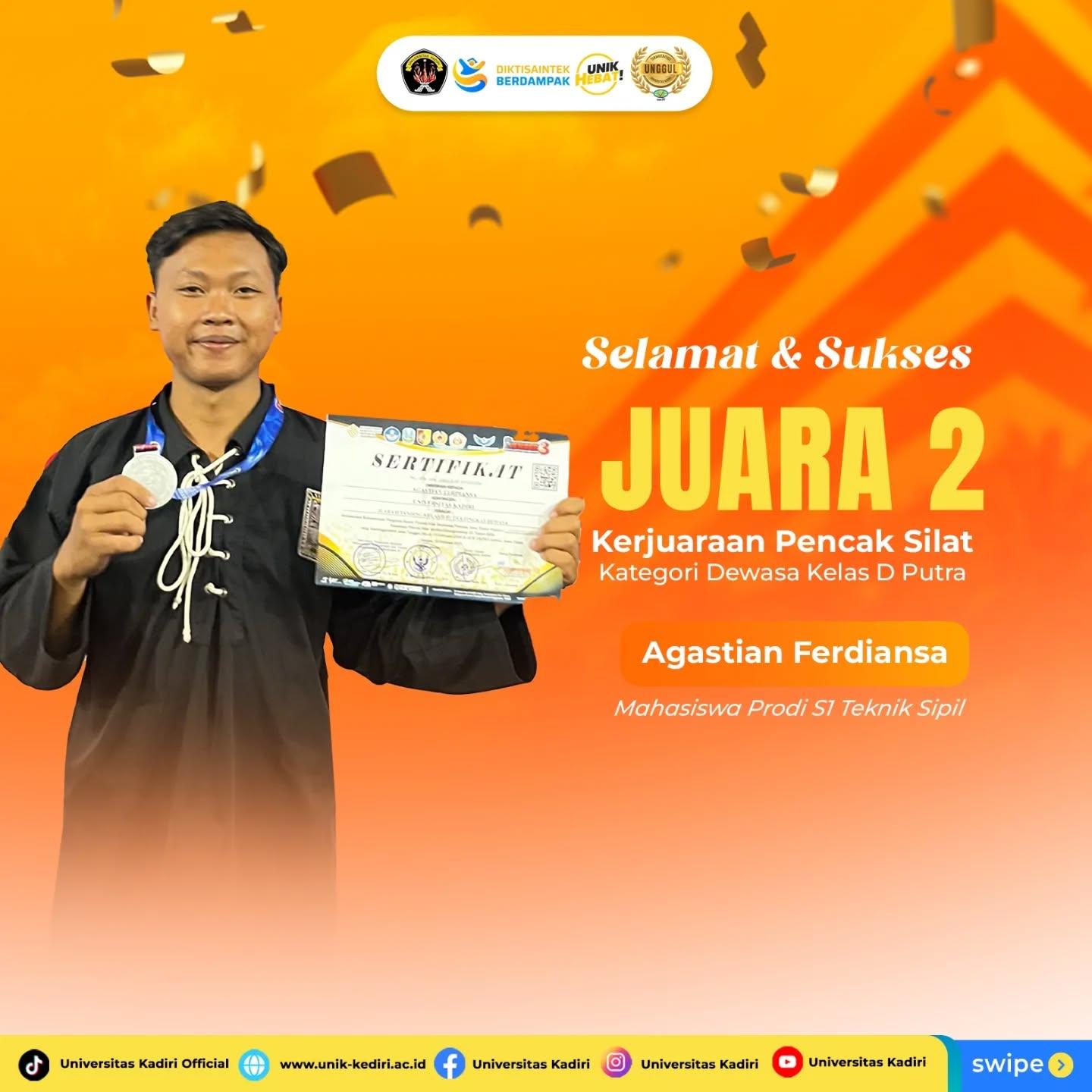 Universitas Kadiri menyampaikan apresiasi dan kebanggaan atas capaian mahasiswa yang berhasil menorehkan prestasi membanggakan dalam ajang Kejuaraan Pencak Silat Jember Championship 3 Tahun 2026. Prestasi ini menjadi bukti nyata bahwa mahasiswa Universitas Kadiri tidak hanya unggul dalam bidang akademik, tetapi juga mampu berkompetisi secara sportif dan berprestasi pada bidang nonakademik, khususnya olahraga bela diri pencak silat.