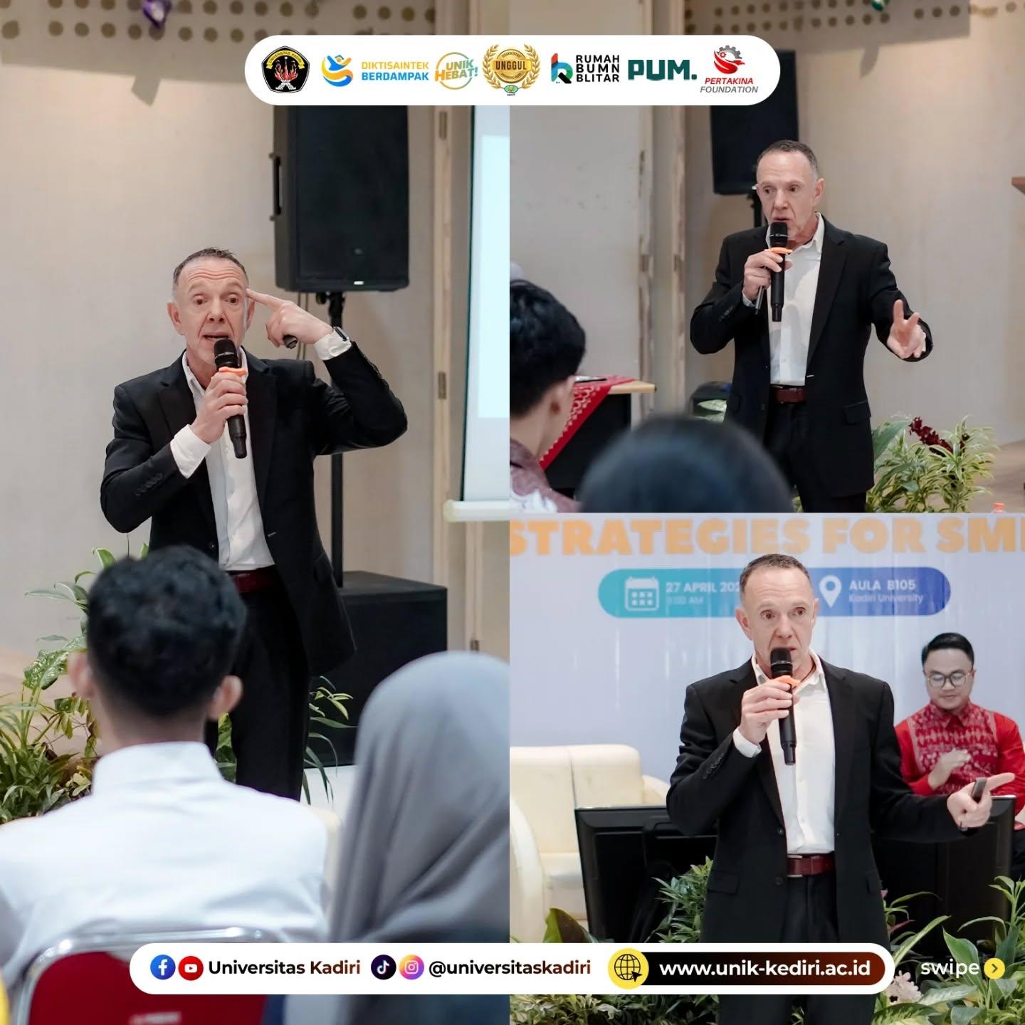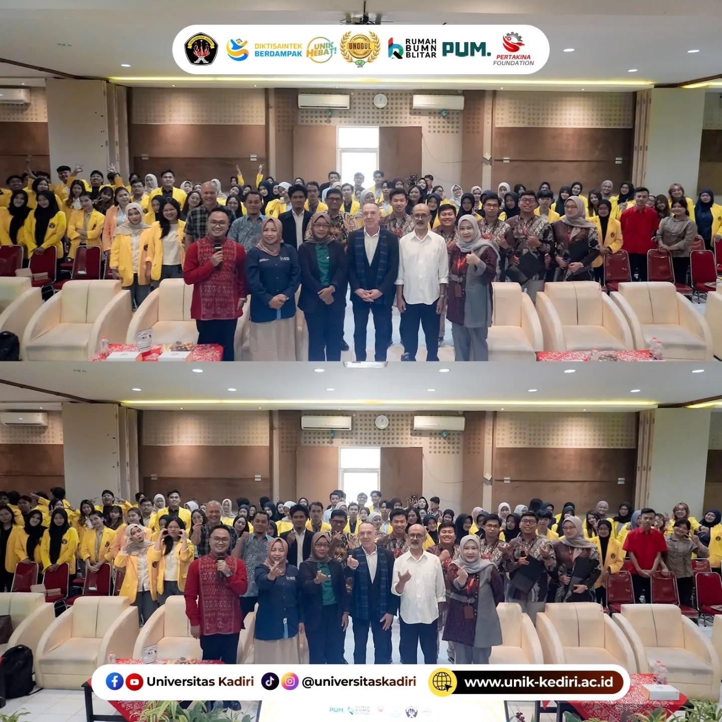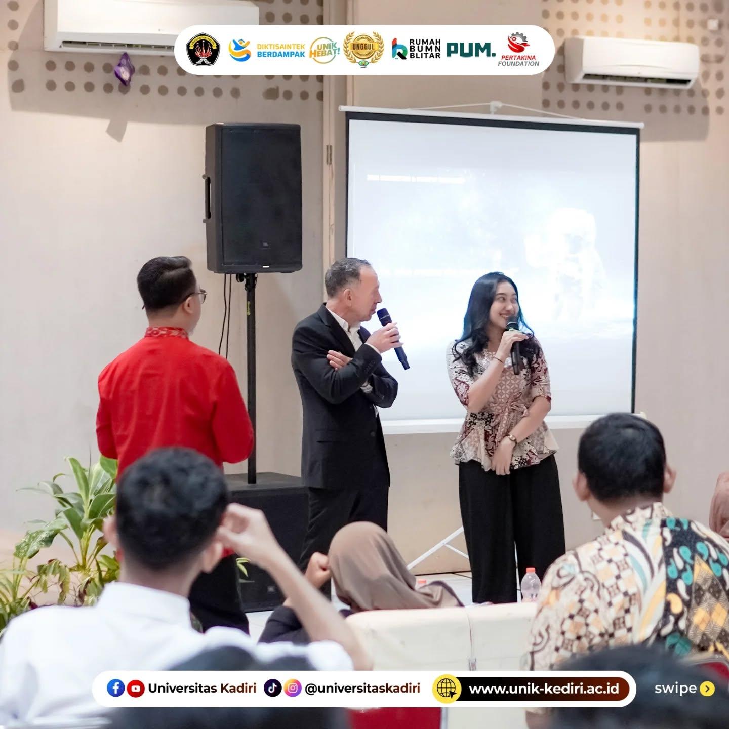 Seminar ini terselenggara melalui kolaborasi Universitas Kadiri dengan Pertakina Foundation, Rumah BUMN Blitar, dan PUM. Hadir sebagai pemateri utama Mr. Mick Walvisch (International Senior Expert), dengan Maftukhan, M.Hum. sebagai moderator. Kegiatan berlangsung interaktif, ditandai dengan partisipasi aktif peserta dalam sesi diskusi dan tanya jawab.