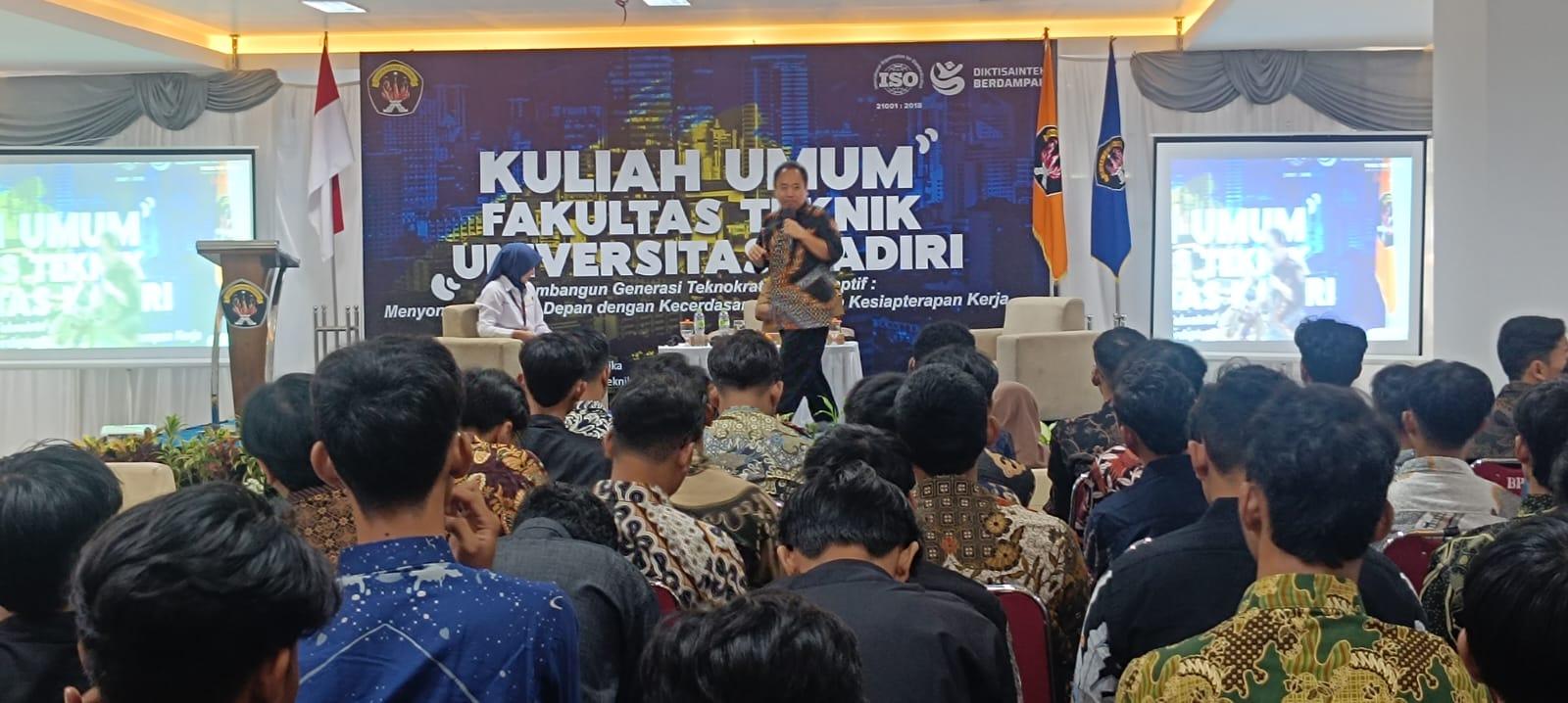 Fakultas Teknik Universitas Kadiri (FT UNIK) kembali menyelenggarakan Kuliah Umum bertema “Membangun Generasi Teknokrat yang Adaptif: Menyongsong Masa Depan dengan Kecerdasan Buatan dan Kesiapterapan Kerja.” Kegiatan berlangsung Selasa, 16 September 2025 di Gedung E-1, Kompleks Gedung E Universitas Kadiri, dengan partisipasi antusias mahasiswa lintas program studi.